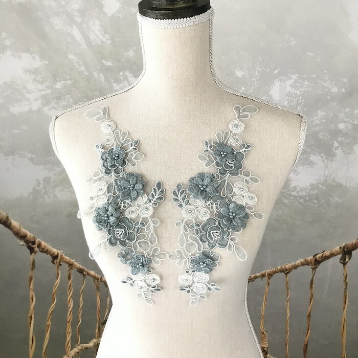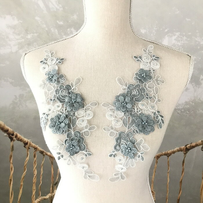 モチーフ ブルーグレー 花 衣装作り レオタード 社交ダンス バトントワリングモチーフ レースモチーフ チュールモチーフ バレエ衣装 コスプレ 舞台衣装