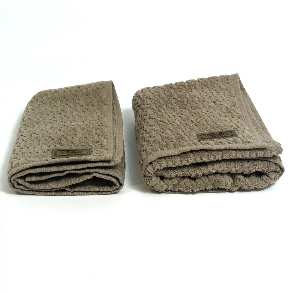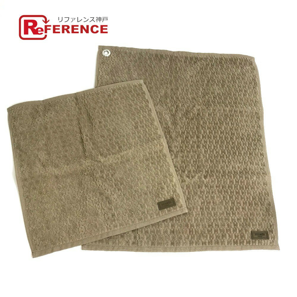 HERMES エルメス SERVIETTES GOLF EPONGE 2枚セット タオル コットン ユニセックス エトゥープ ブラウン 未使用 【中古】