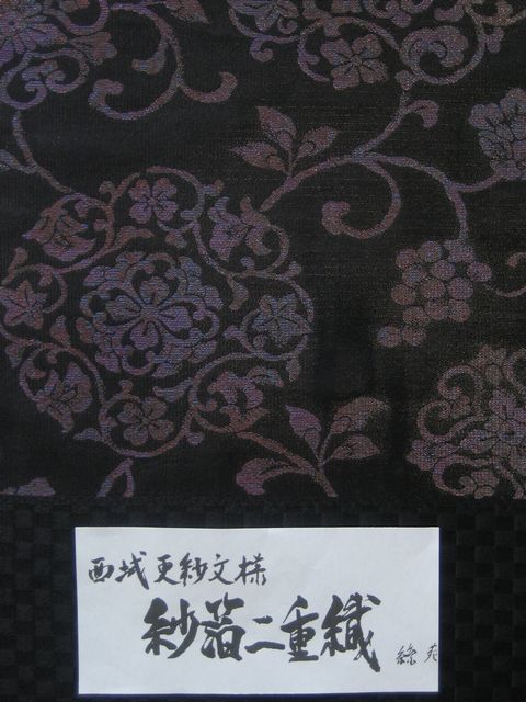 西陣織袋帯 紗箔二重織 葡萄唐草と華紋 黒に紫【smtb-k】【ky】