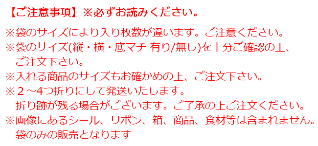 入れる商品サイズよりも大き目な袋をお選びいただくことをお勧め致します。